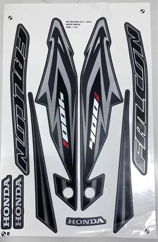 Restaure sua Honda NX 400 2013/14 com este kit completo de adesivos originais na clássica cor preta. Produto de primeira linha com padrão de fábrica para garantir o acabamento autêntico e elegante.