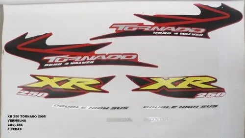 Transforme sua Honda XR 250 Tornado 2005 com este kit completo de adesivos vermelhos, devolvendo o visual original de fábrica com qualidade superior!