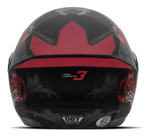 Capacete Tork New Liberty Three Flowers Vermelho Fosco combina segurança, conforto e um visual sofisticado para motociclistas exigentes. Seu acabamento fosco e a estampa floral exclusiva dão um toque moderno e feminino que se destaca em qualquer ocasião.