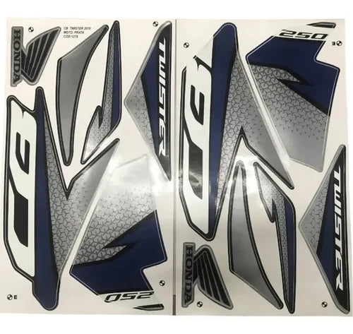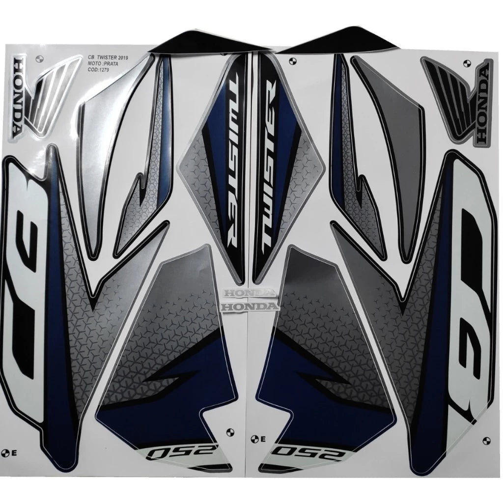 Kit Completo de Adesivos Honda CB 250 Twister 2019 - Cor Prata