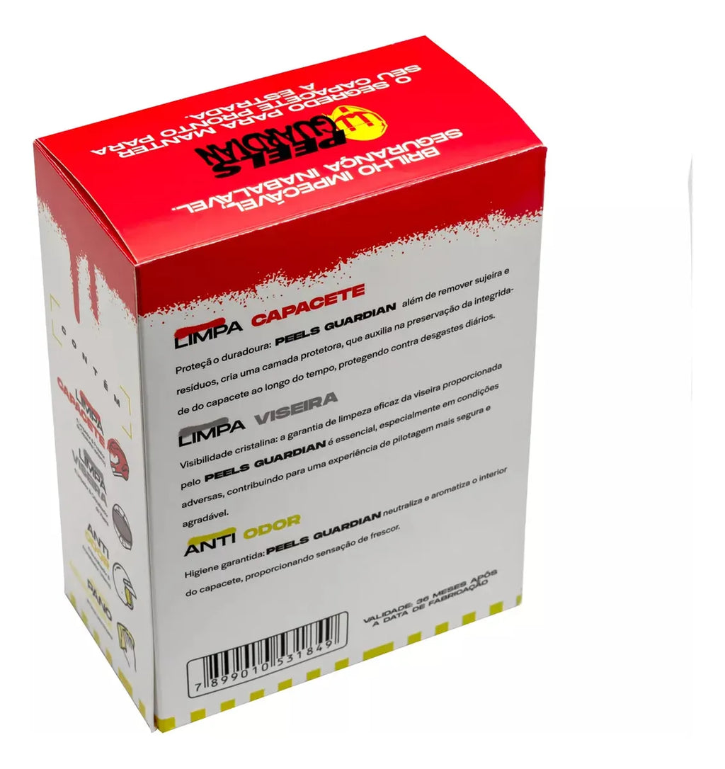 Proteção duradoura: Peels Guardian além de remover sujeira e resíduos, cria uma camada protetora, que auxilia na integridade do capacete ao longo do tempo, protegendo contra desgastes diários.